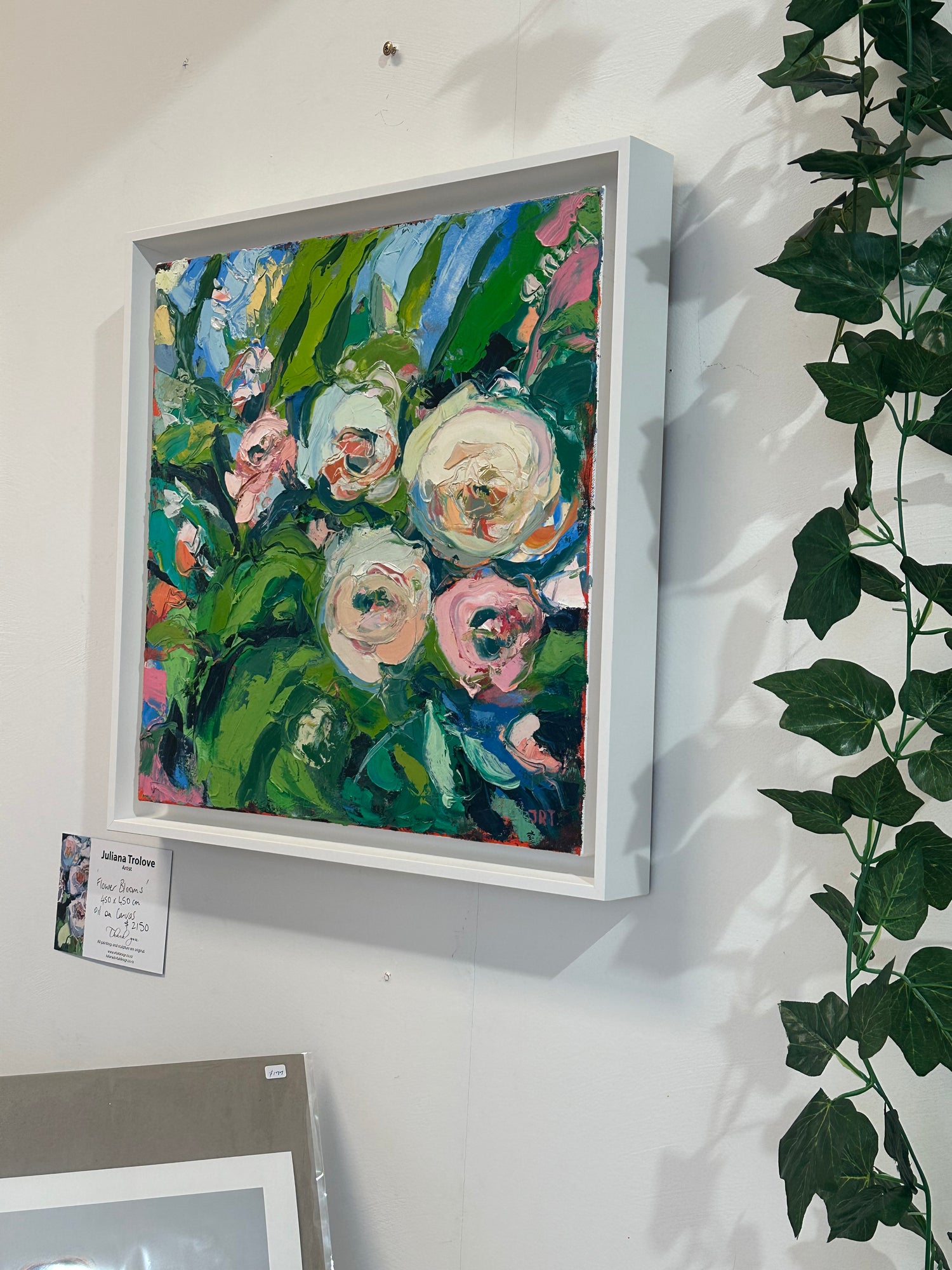 Stunning original Oil on canvas. Framed in a beautiful white box frame.
