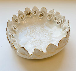 Deeanne Hobbs is a ceramicist based in Nelson. Known primarily for her clothing label Jellicoe clothing, Deeanne has turned her hand to ceramics which we are proud to stock. Inspired by flora and fauna she creates beautiful porcelain pieces from her home studio. Embellished with 24ct gold lustre glaze, each piece is unique, vibrant and precious.