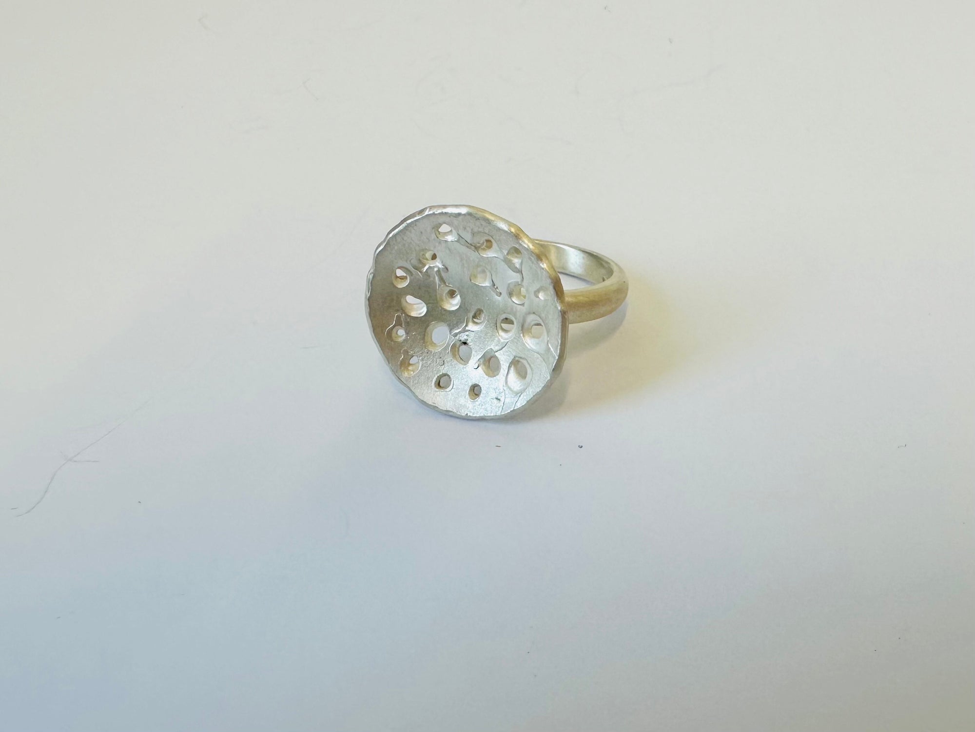 Molten Ring - with holes and conclave top. Hand made by Nelson jeweller Erika Heidi.