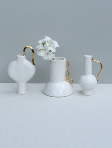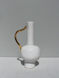 Oh Pretty One with a gold handle is a hand built and painted vessel by artist Susan Christie. Holds water so can be displayed with your favourite flora or simply on its own as a work of art. Glazed on the inside and out.