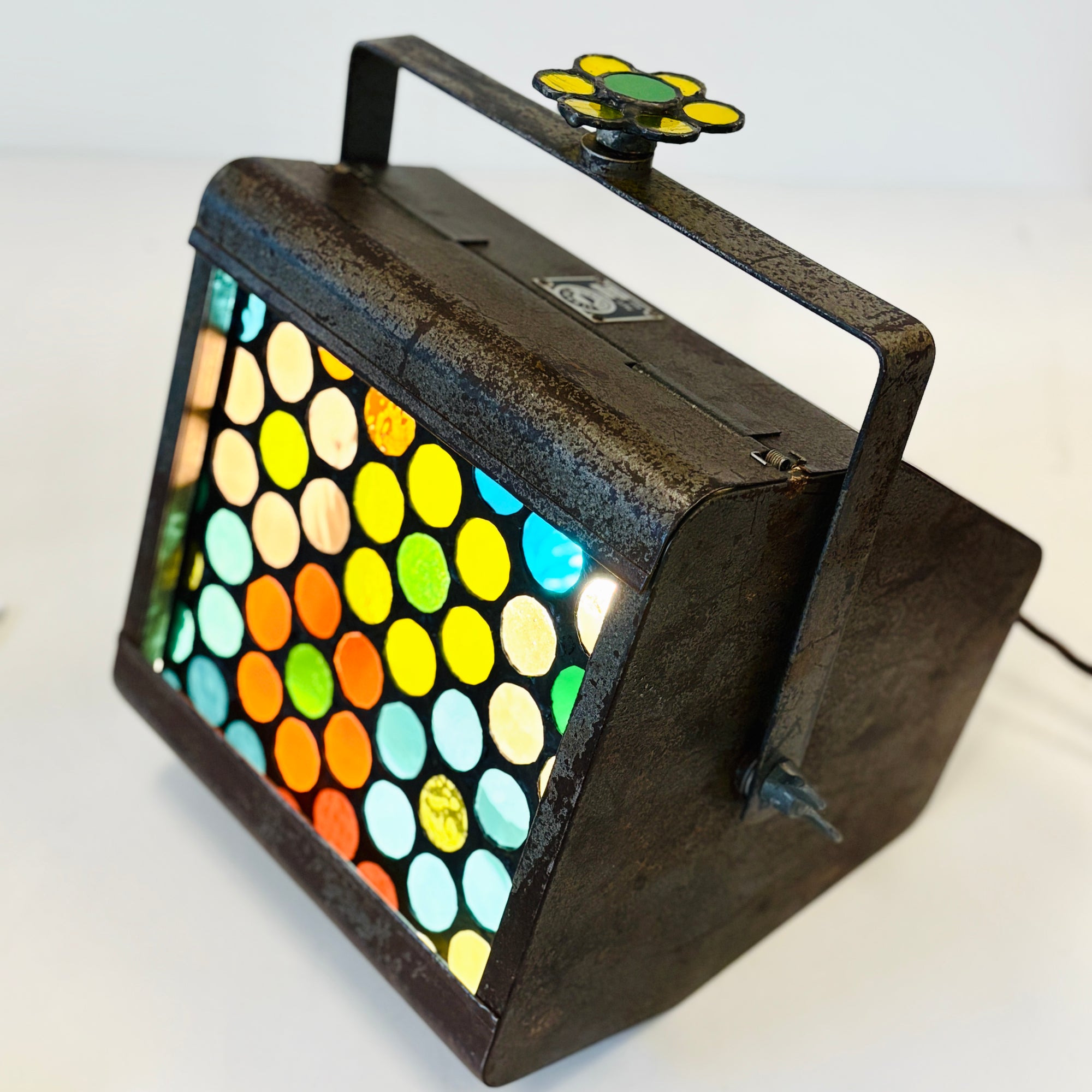 Working Vintage Stage Light Sculpture with stained glass and metal by artist Abbie Scott.