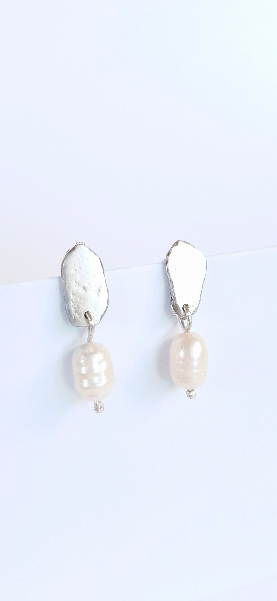 Gorgeous sterling silver nugget earrings with fresh water pearls.