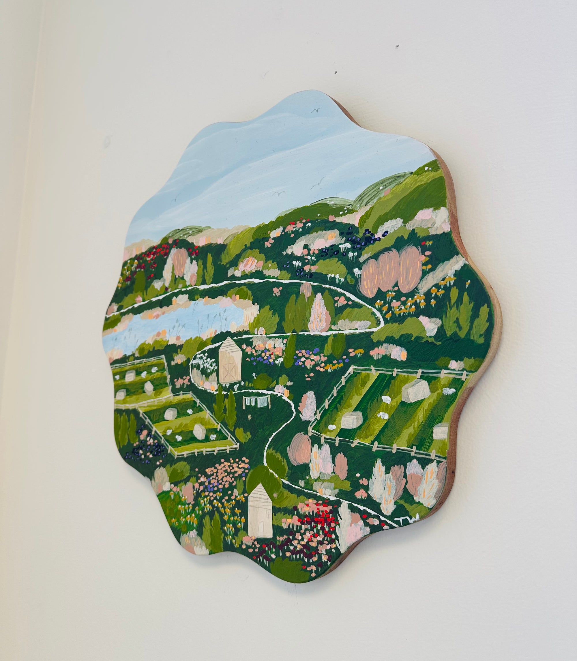 A delightful scene from ‘The Farm’ series created in the artist’s illustrative style. A beautiful piece you can get lost in.